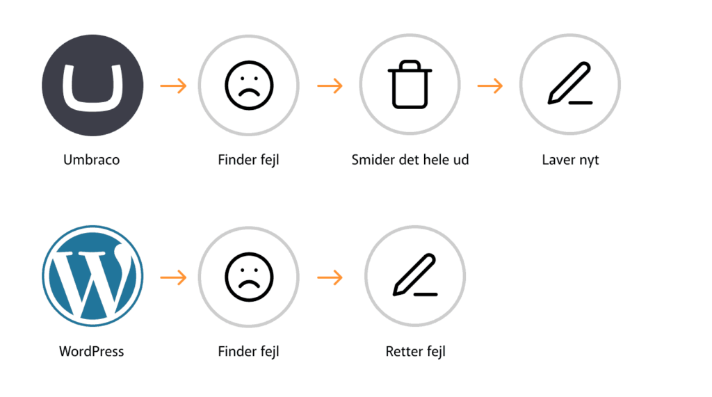 Umbraco og WordPress er bygge på to vidt forskellige “School of thought”, hvilket er den største forskel.